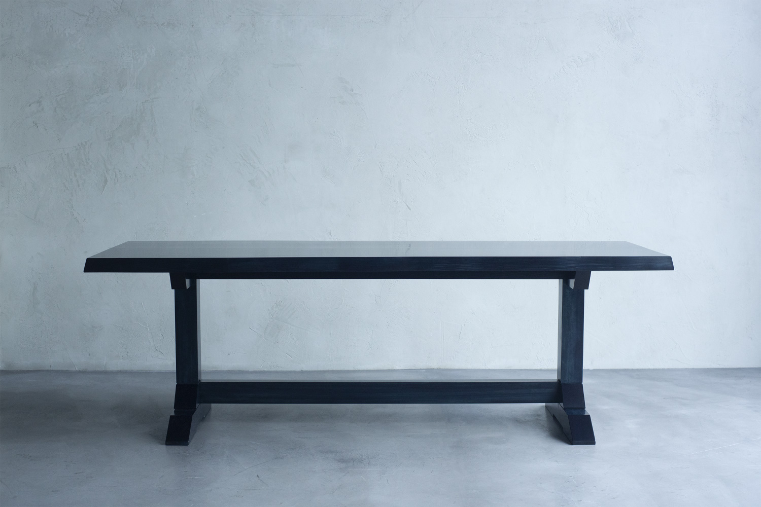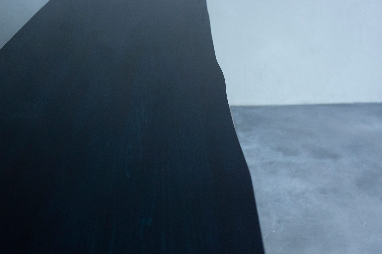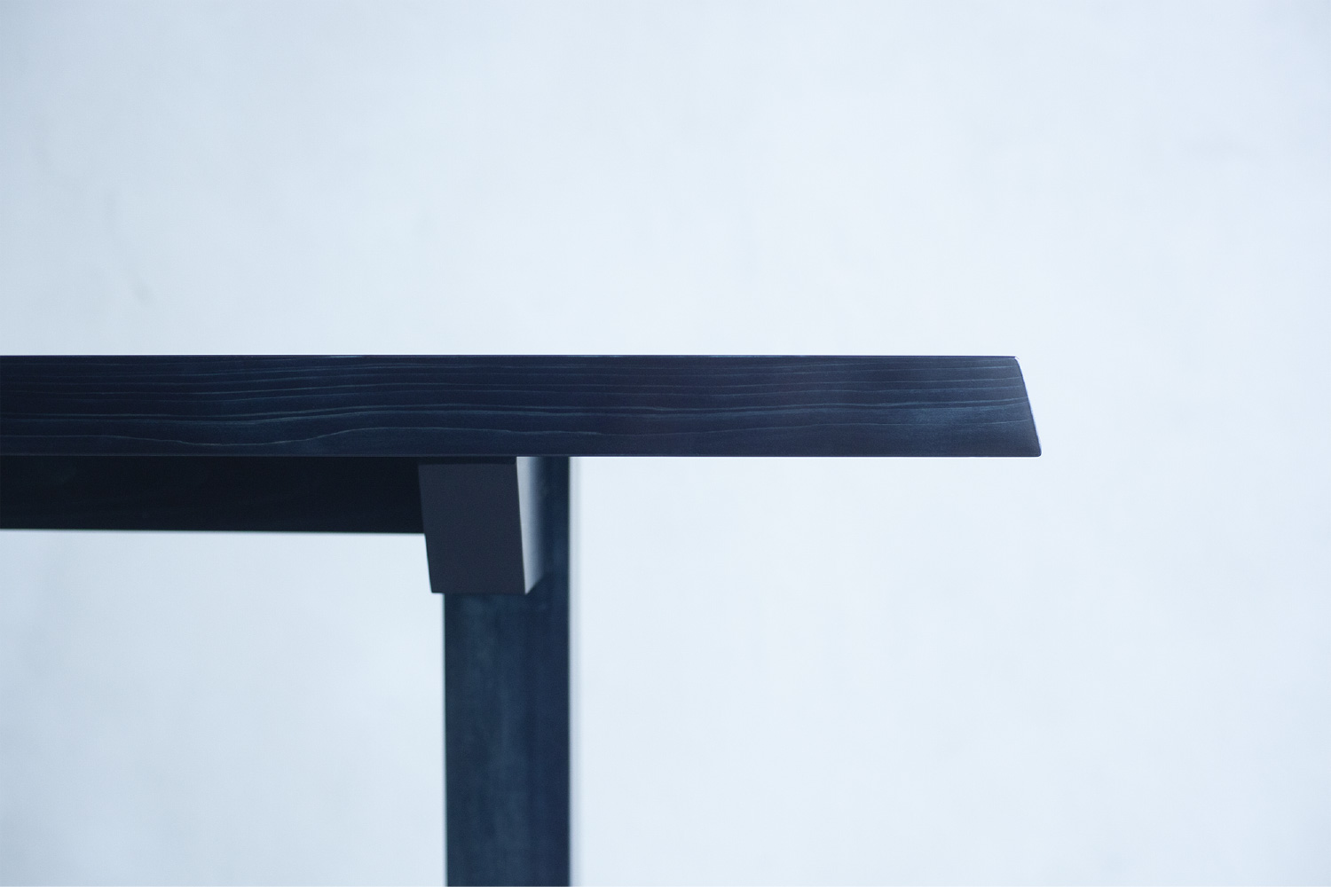 鮮やかに藍染めされた無垢材の木目が最大限に表現された天板です。